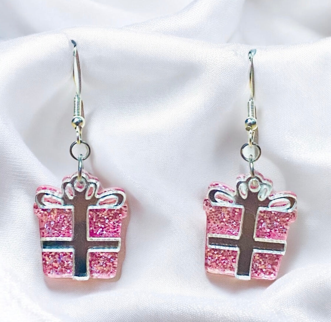 Unwrap the magic of the holiday season with these delightful Gift of Sparkle earrings! Featuring intricately designed acrylic presents wrapped in glittery bows, these earrings add a touch of festive flair to any outfit.