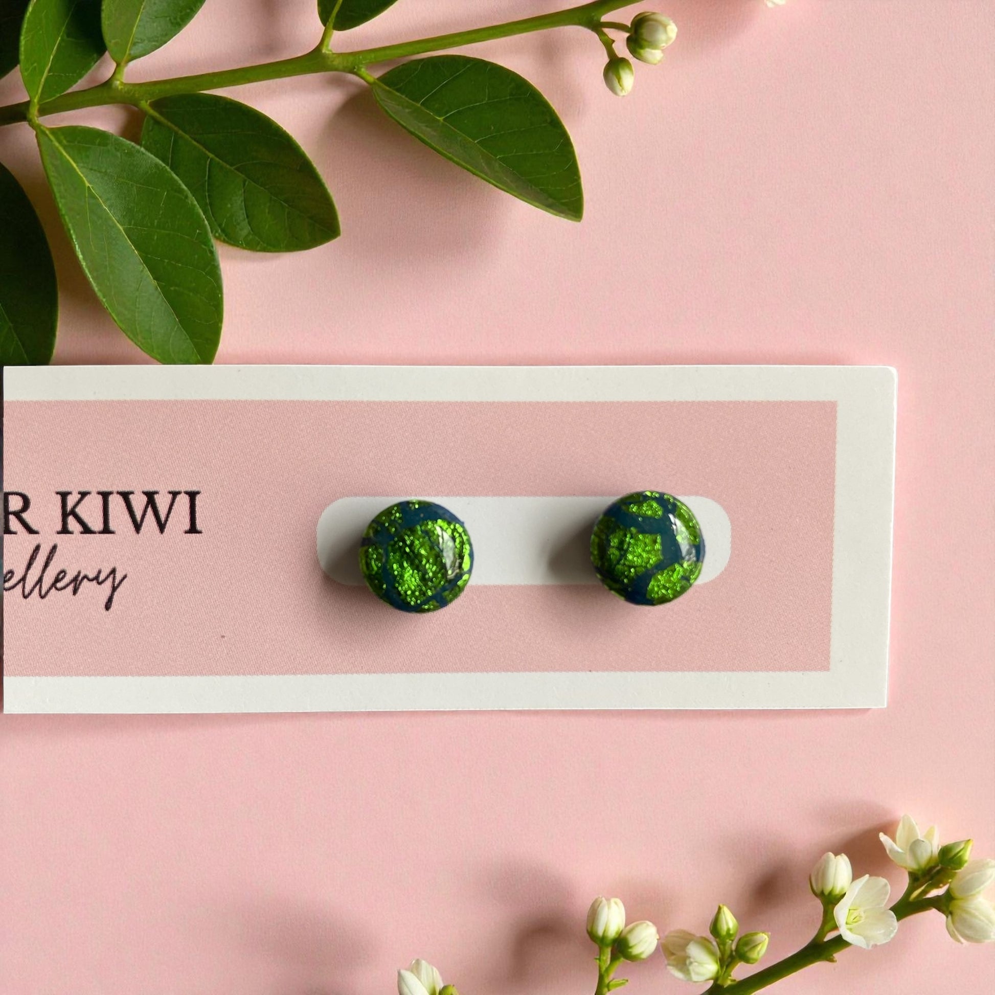 Get ready to add a touch of Christmassy sparkle to your style with the "Green Christmas Glow" pair of polymer clay stud circle earrings!