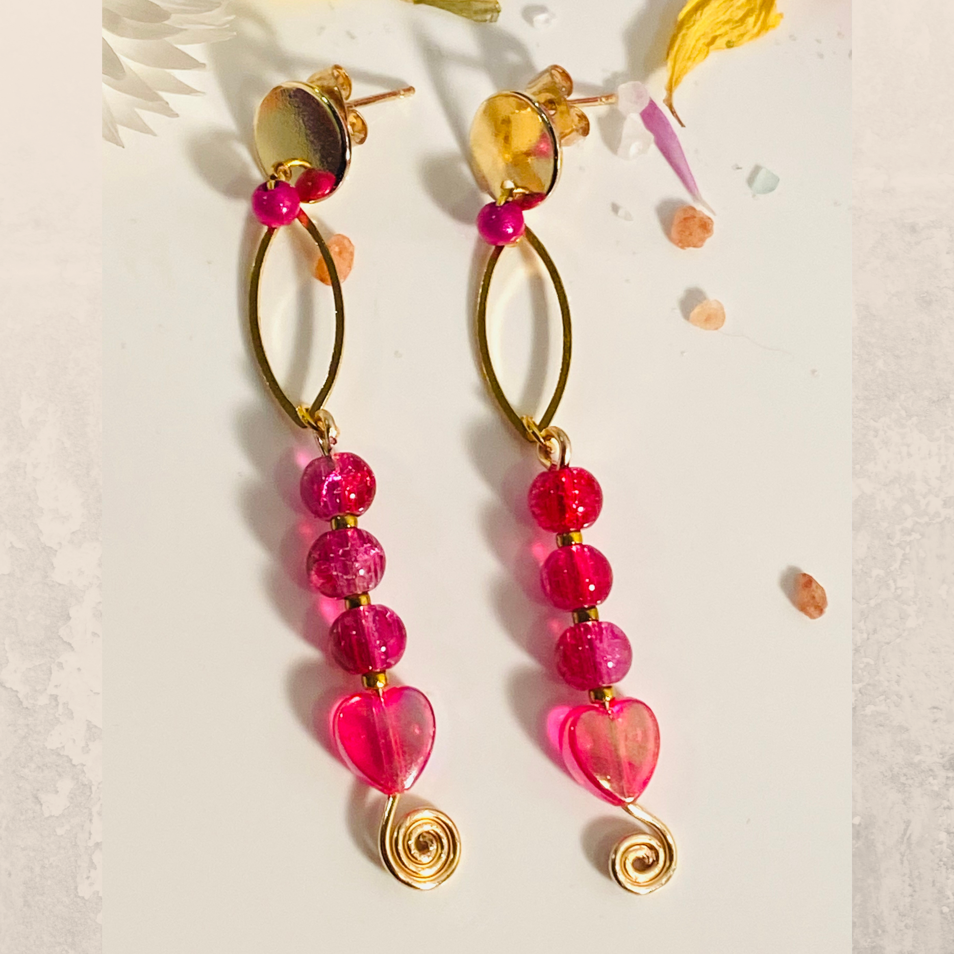 With a flat gold circle stud, sweet red and pink beads, and delicate gold accents, they're the perfect accessory for a romantic evening out.