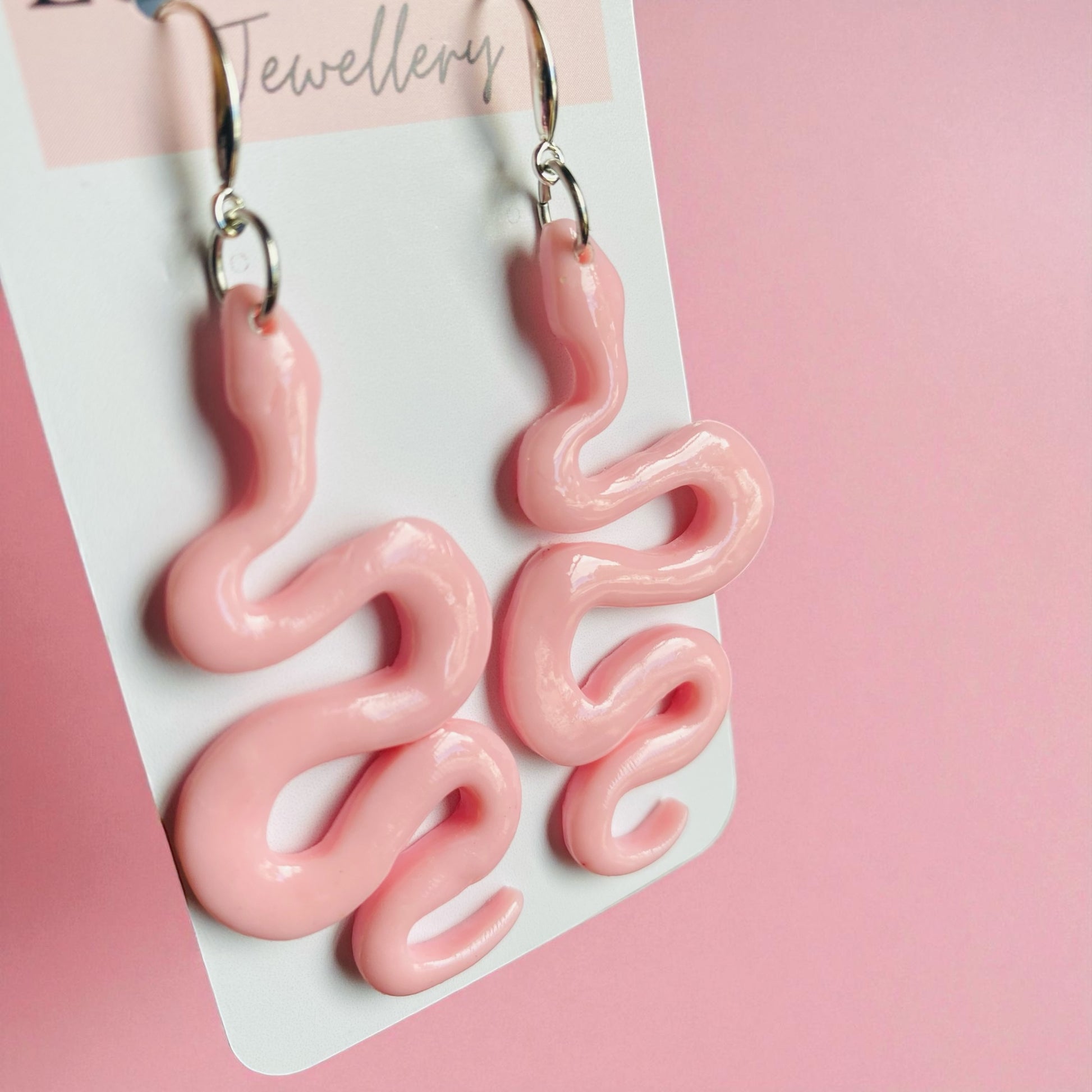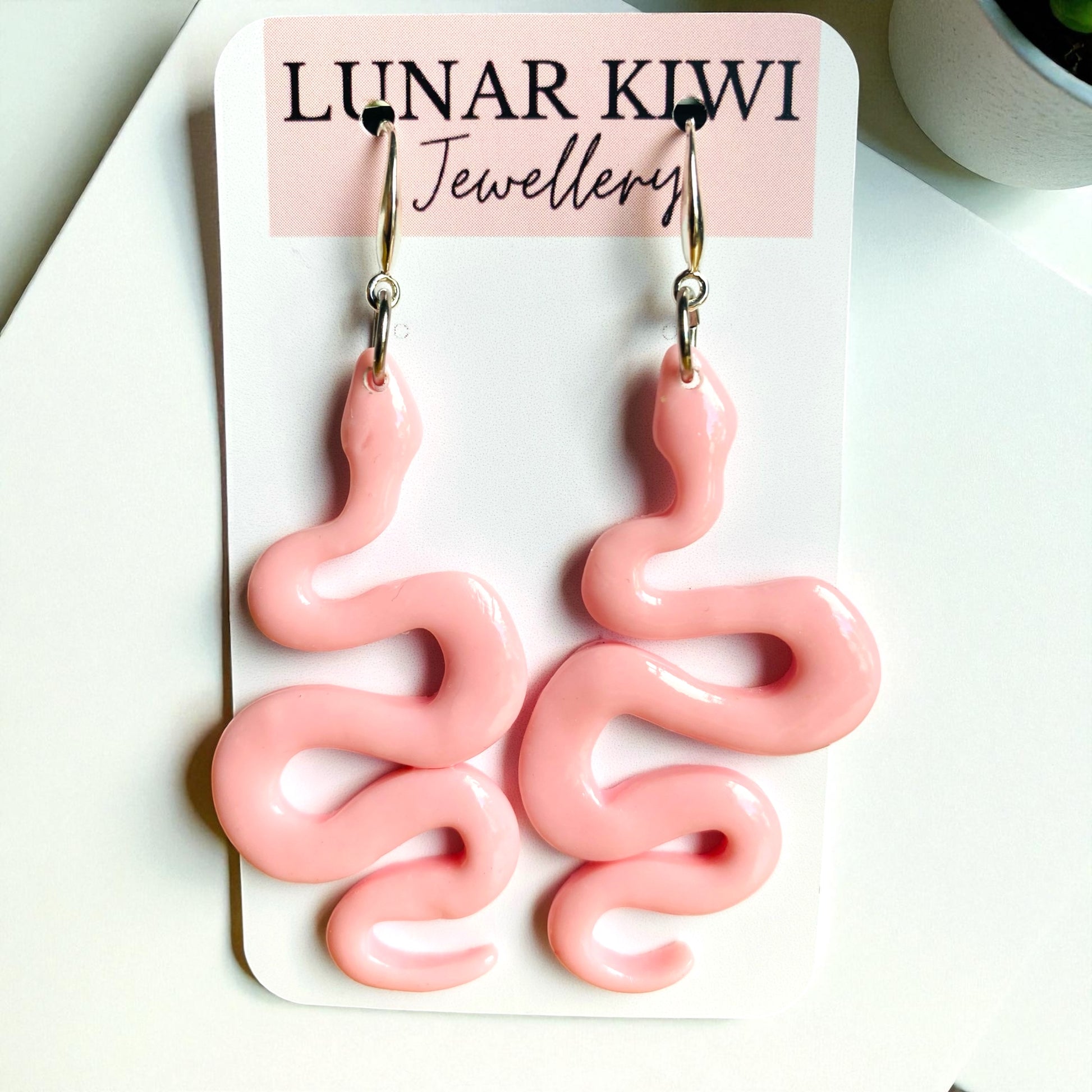 Slither into style with these vibrant, handmade polymer clay snake earrings!