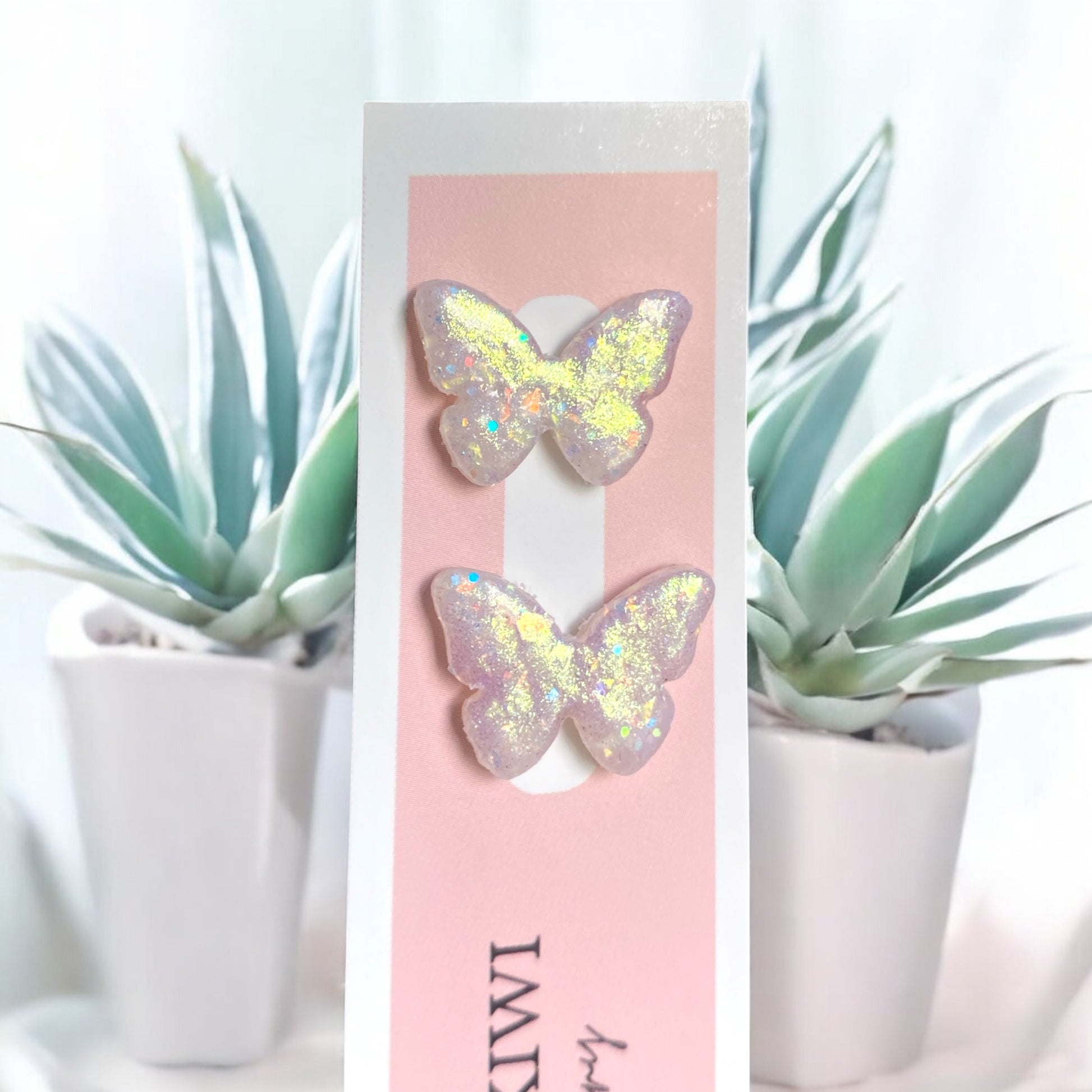 These adorable earrings feature butterfly-shaped studs measuring 1cm x 2cms, available in: Frosty Sparkle.